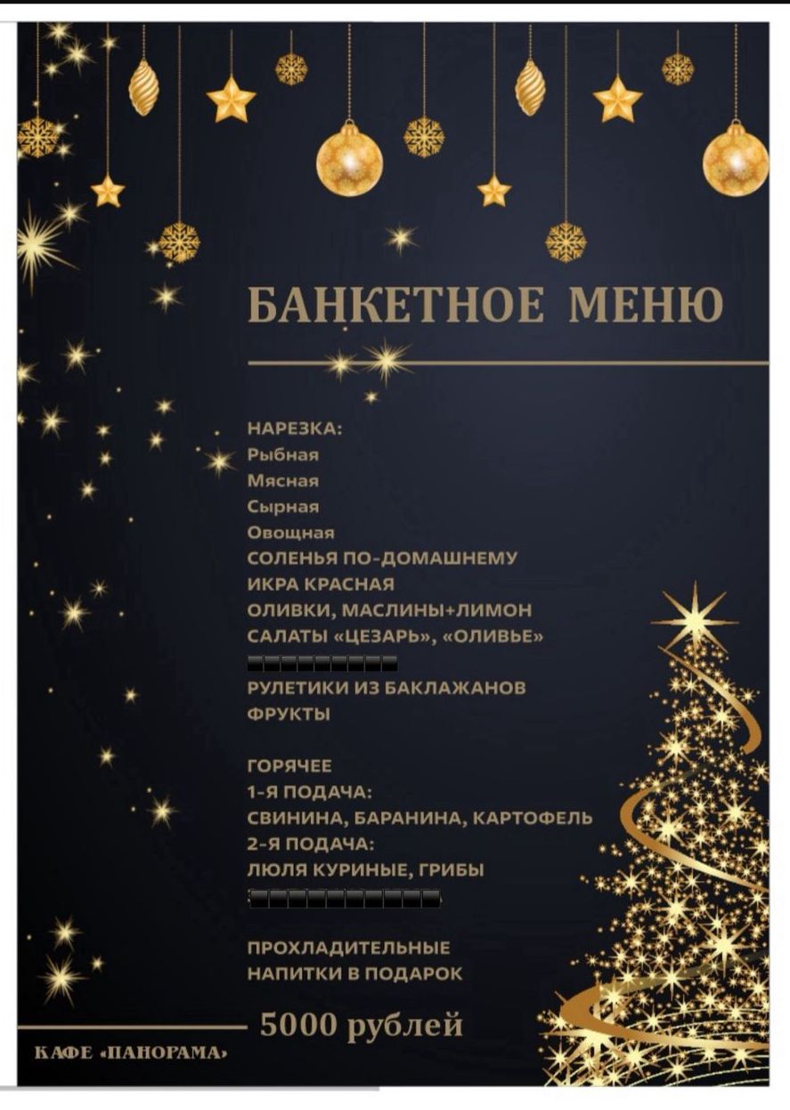 Новогодний праздничный стол с изысканными блюдами, напитками, живая музыка и атмосфера праздника