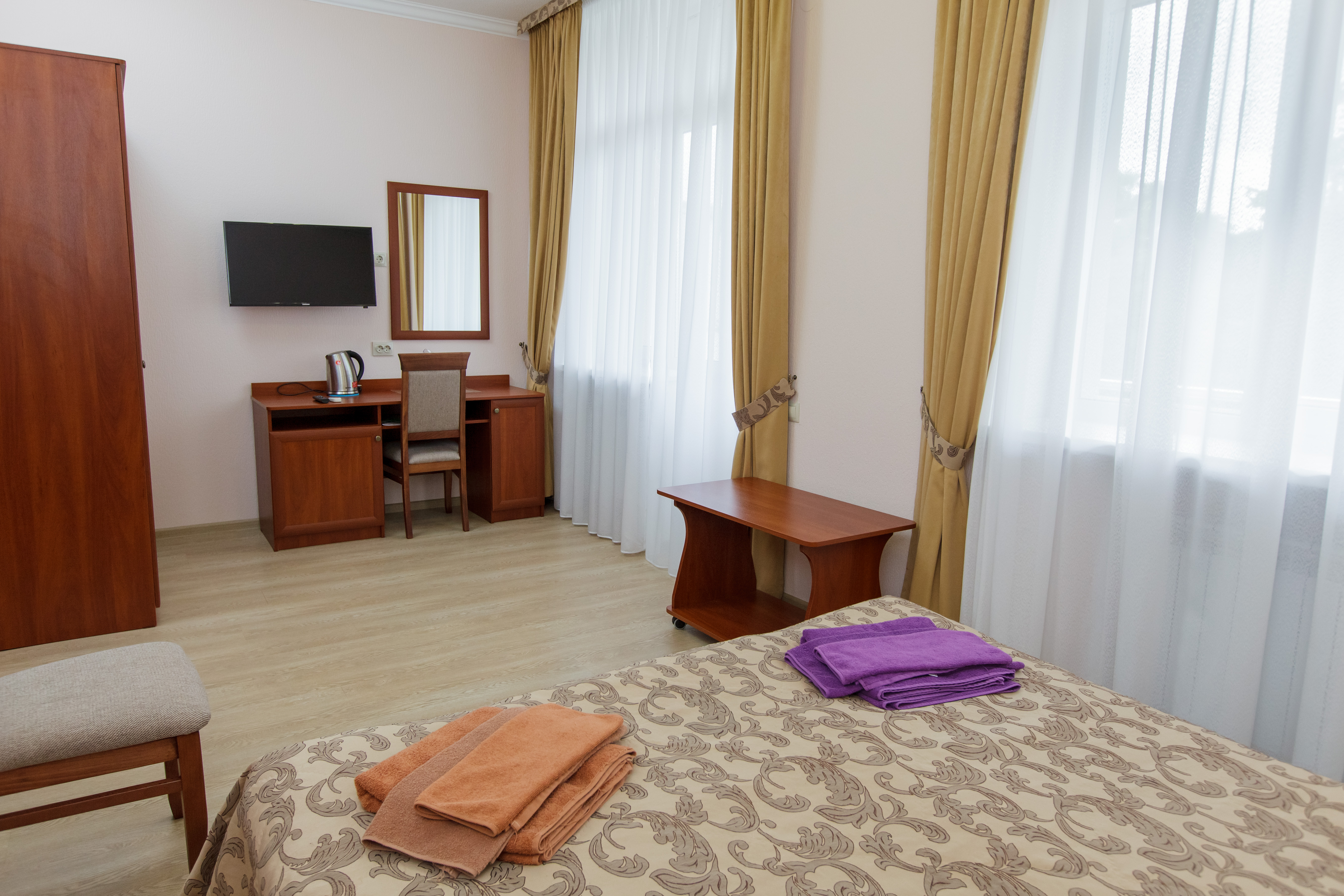 Комфортные условия проживания — двухместные номера в обоих корпусах оборудованы всем необходимым для приятного отдыха.
