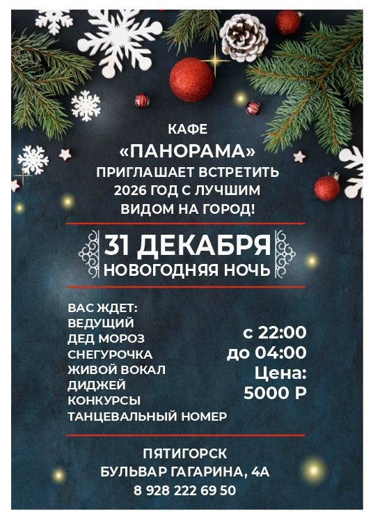 Программа Новогодней ночи 31 декабря 2025 года в санатории
